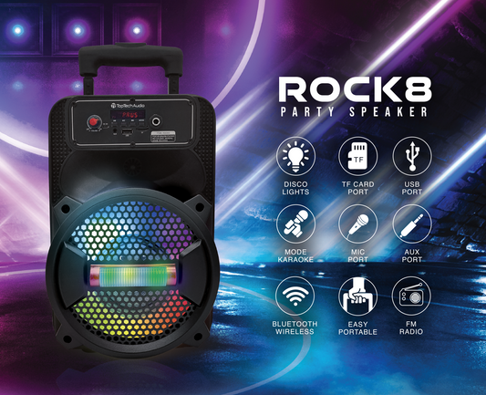 TOPTECH Angel-8 Portable 8" Bluetooth Party Speaker with LED Lights and Remote